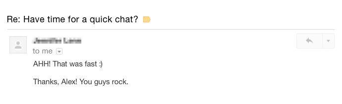 Micile erori săvârșite la un produs pot măcina enorm încrederea utilizatorilor (compatibilitatea serviciului cu anumite domenii). De obicei, despre ele nu se discută, însă provoacă o neplăcere ca un fir de păr în ochi. Feedback-ul a permis dezvoltatorilor să le elimine rapid. Alex numește această metodă, Customer WOW: