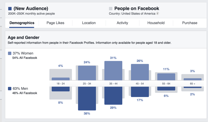 Având în vedere că Facebook pare să știe totul despre utilizatorii săi, poți sa aduni oricare parametri de audiență care iți ilustrează cumpărătorul țintă: locație, vîrstă, sex, specialitatea lucrului, statusul marital, interese, activitate, paginii care i-au plăcut.